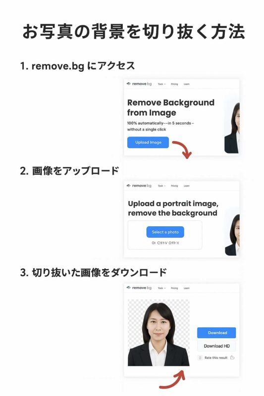 「お手持ちの画像を背景透過 PNG にしていただくには、以下のオンラインツール/アプリが便利です。
